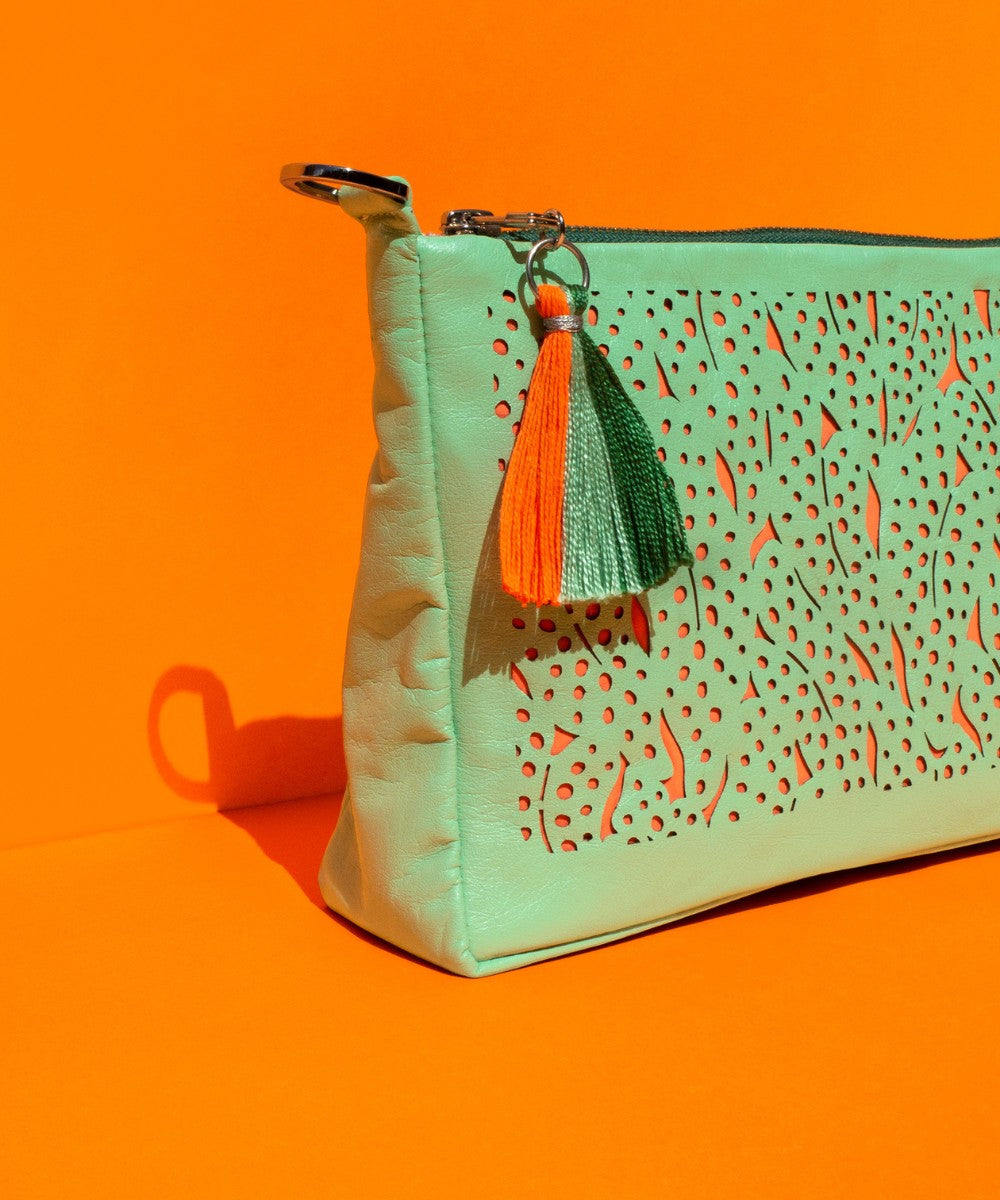 El accesorio de viaje que necesitabas, lleno de sofisticación y estilo.Elaborada en cuero nappa, combina un diseño vibrante, color y practicidad. Su base especial permite llevar de pie botellitas y esenciales de viaje, convirtiéndola en la makeup bag perfecta.